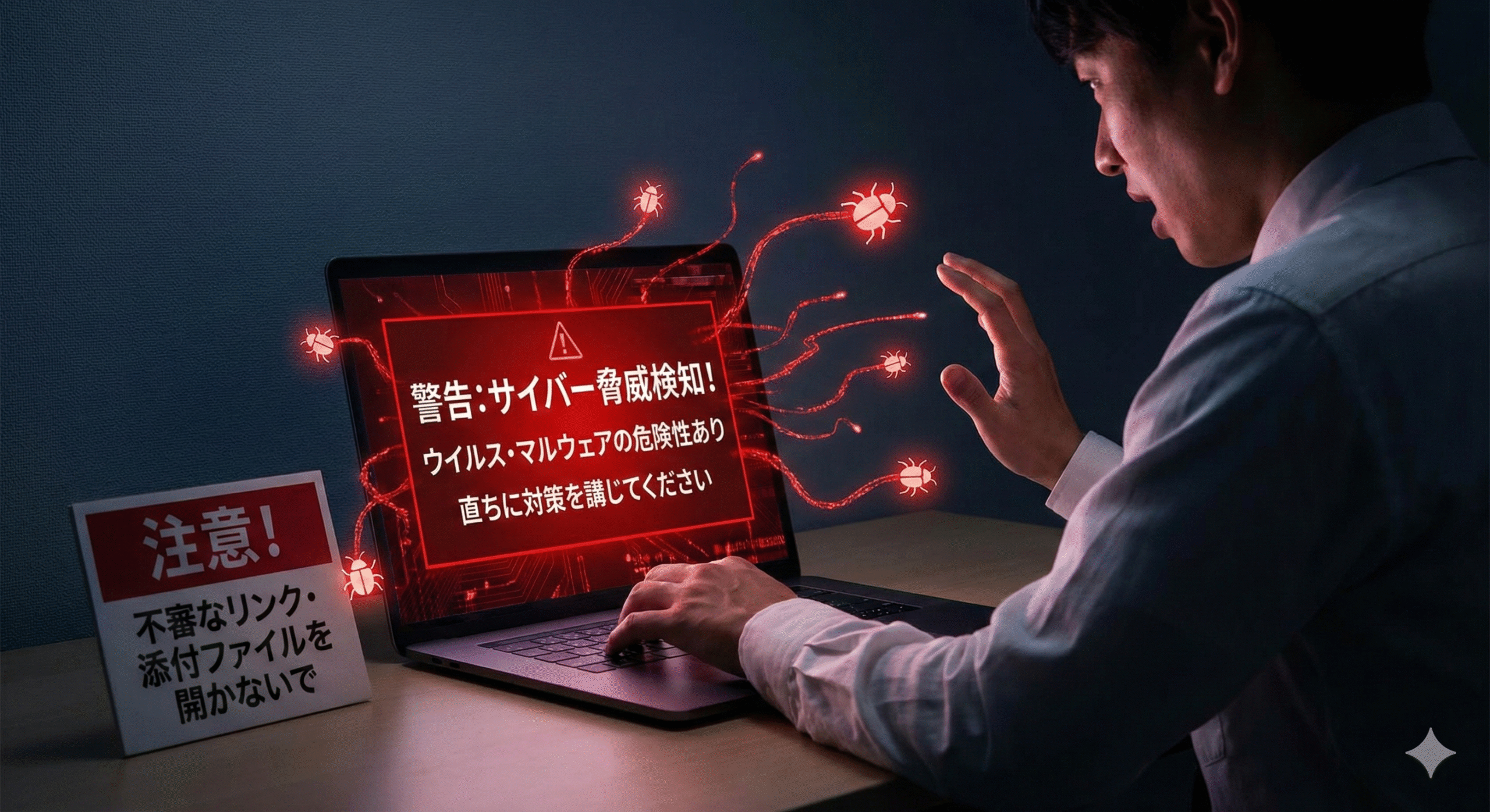 怪しいメールは開かず、リンク・添付ファイルはクリックせず、即座に削除するようにしましょう。